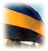 staan een gele leeuw op een blauw veld en een zwarte leeuw tegen een